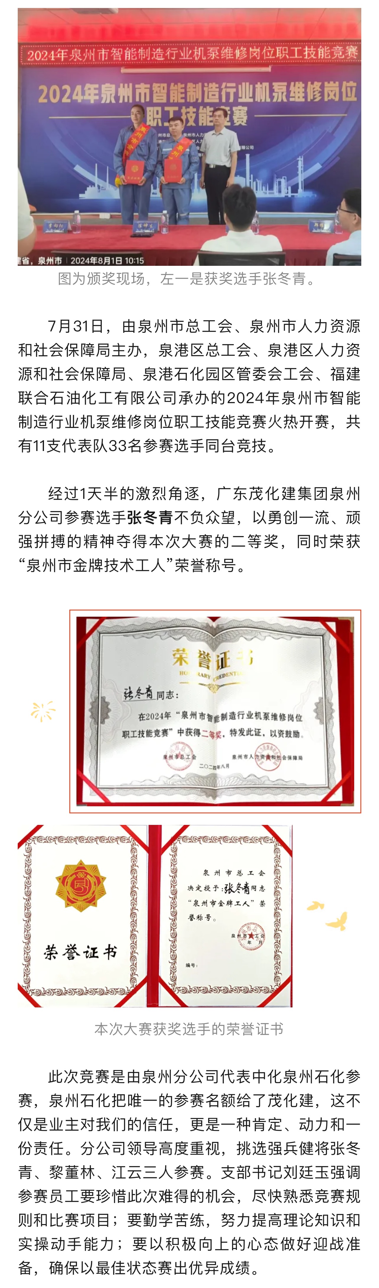 泉州分公司在泉州市維修機(jī)泵技能競(jìng)賽創(chuàng)佳績(jī)