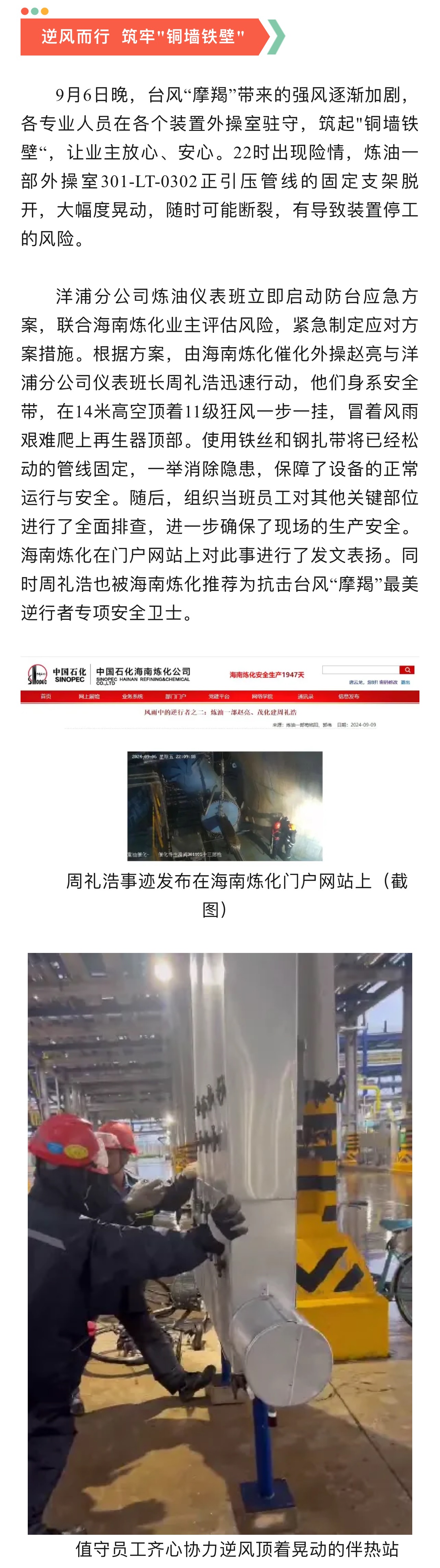 茂化建洋浦分公司抗擊超強(qiáng)臺(tái)風(fēng)"摩羯”獲業(yè)主高度表揚(yáng)