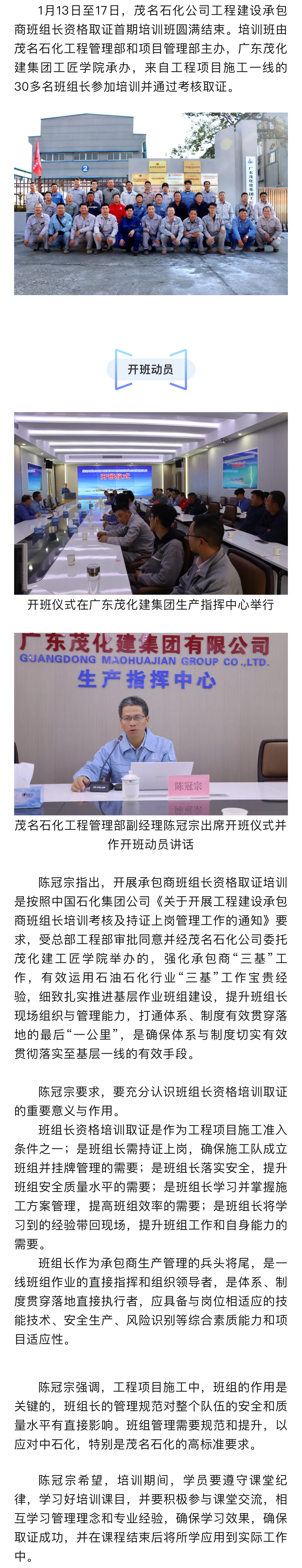 茂名石化工程建設(shè)承包商班組長(zhǎng)資格取證首期培訓(xùn)班圓滿結(jié)束