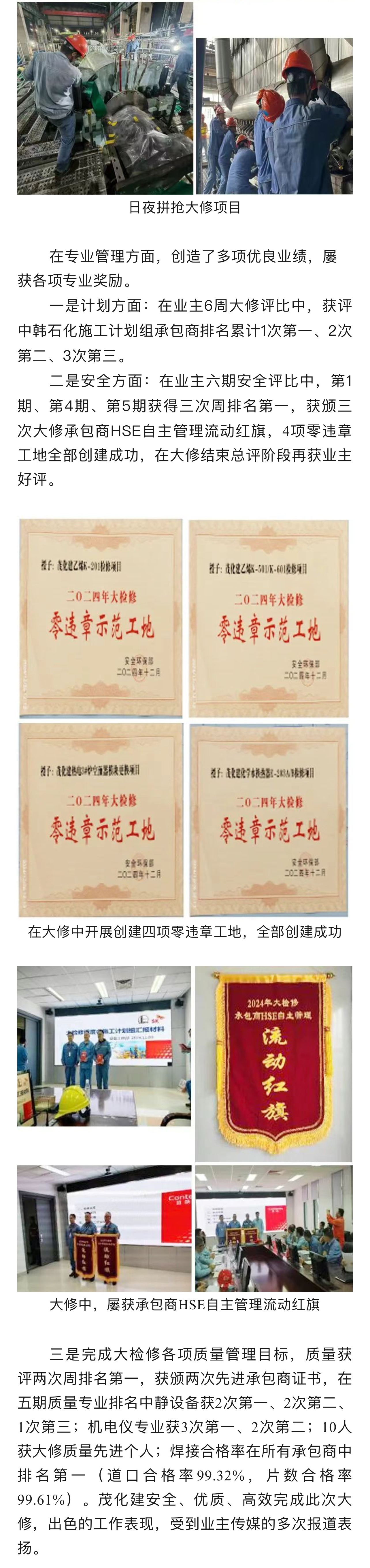 喜報(bào)|榮獲中韓石化2024年大修改造 “優(yōu)秀承包商”稱號