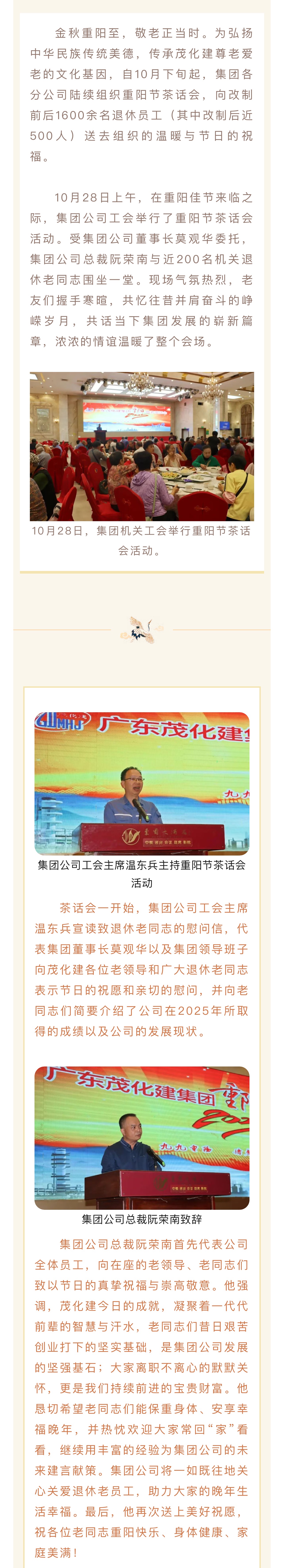 情暖重陽,共話發(fā)展—— 廣東茂化建集團(tuán)開展2025年重陽節(jié)茶話會活動